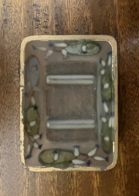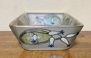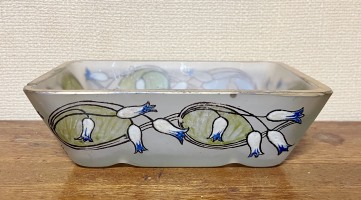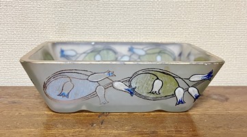 エナメルで植物(鈴蘭でしょうか)を描いた硝子製のソープディッシュです アールヌーボー期にはエナメル彩で植物を描いた硝子製品が数多く作られていましたが ソープディッシュは初めて見ました エナメルや金彩が多少剥げてはいますが 日常的に使われていた割にコンディションは良好です
