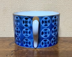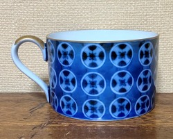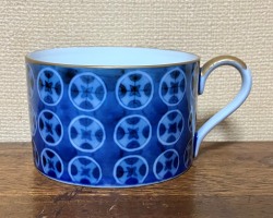 七宝紋をモチーフにしたカップ&ソーサーです 七宝紋はプリントではなくすべて手描き 背景の濃みもすべて手描きという 手間暇を掛けて作られた品です 伝統的な七宝紋を用いながらも アールデコのモダンさを兼ね備えた名品です